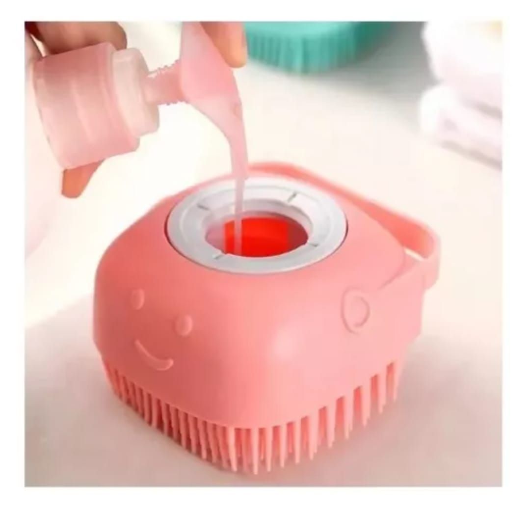 Modo de uso: Llena el dispensador con el jabón o champú de tu mascota, presiona ligeramente durante el baño para liberar el producto y frota suavemente en su piel y pelaje con las cerdas del cepillo.